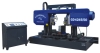 Numeric-controllongitudinal and transverse band sawing machine Model:GD4245/50 cutting range(mm): vertically:450×500 horizontally:800×500 Main power: 3.79kw Saw blade size: 5350×34×1.3(mm) Linear velocity of saw blade: 15→80 Fastening mode: hydraulic Main features: 1.portable ganty structure 2.portable guide structure portable bench structure 3.portable bench structure 4.one-stop fixture for sawing vertucally,horizontally,or at difference bevel 5.Equipped with numeric-control system for optional sawing modes 6.progressive work-piece dastener structure